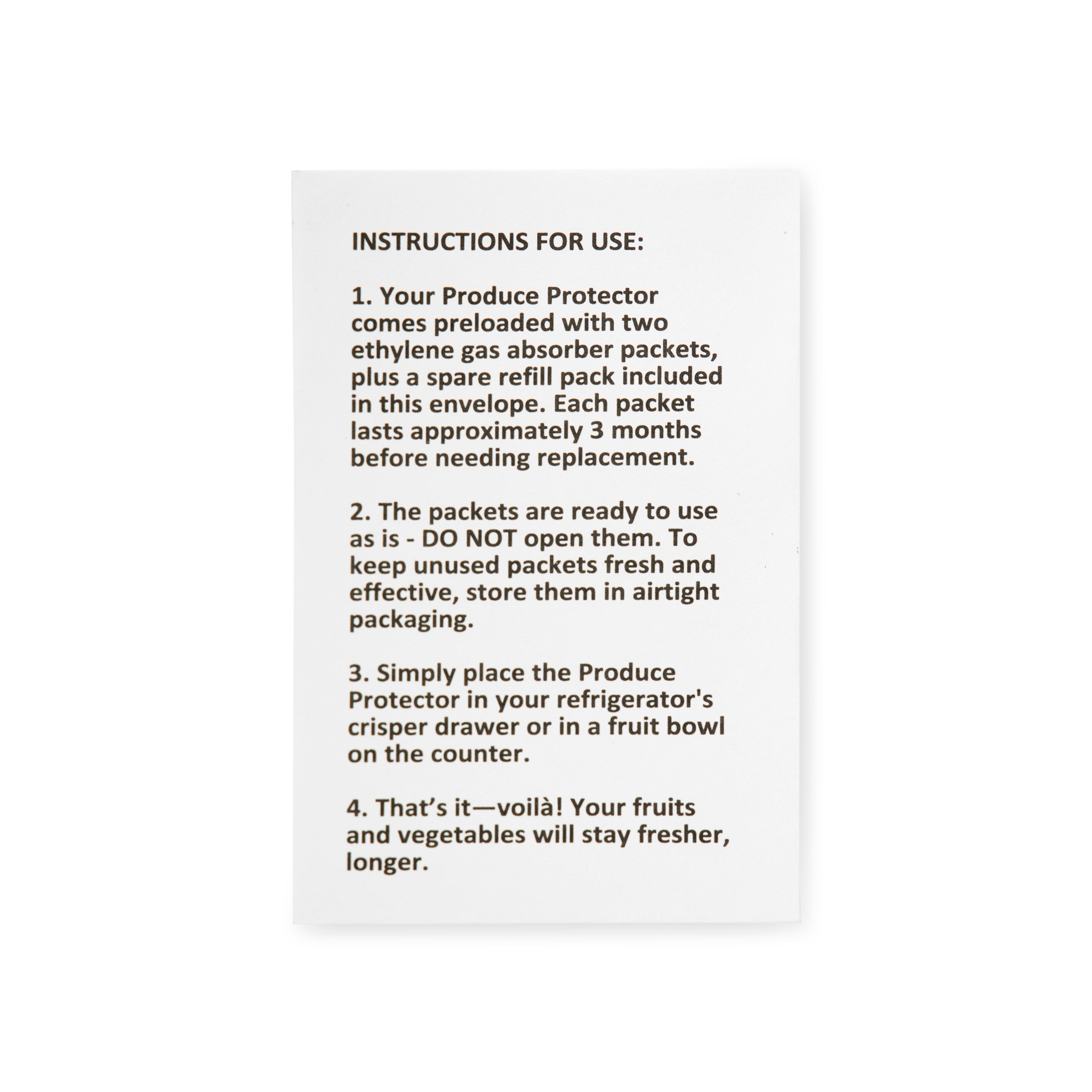 - LONG-LASTING, REPLACEABLE PACKETS – Each ethylene gas absorber packet lasts up to 3 months for continuous freshness protection. To maintain peak effectiveness, replace the used packet every 90 days. Old packets can be safely discarded, making this a simple and low-maintenance addition to your kitchen routine.