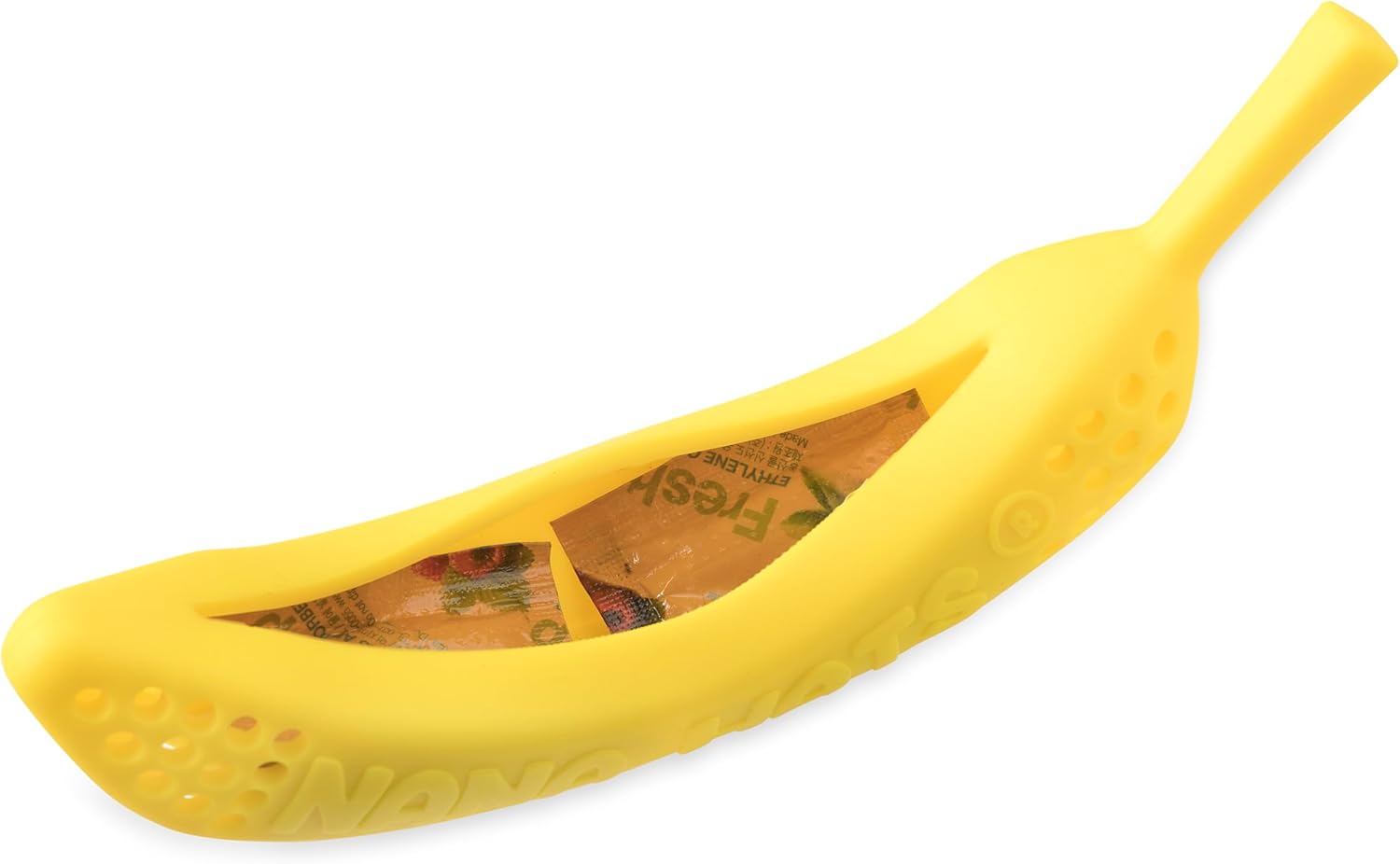 Includes silicone banana holder and 4 ethylene gas absorbing packets.